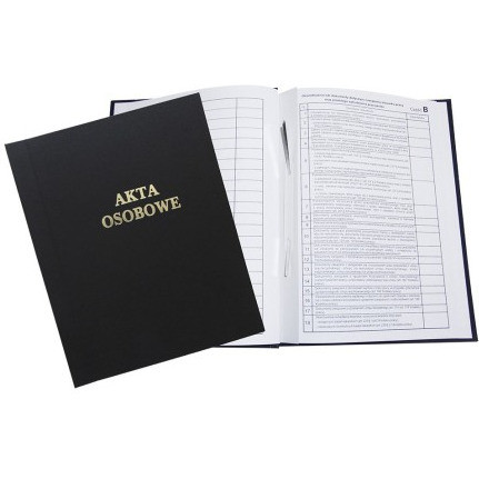Na okładce umieszczony jest złoty nadruk "Akta osobowe", wykonany metodą tłoczenia na gorąco.