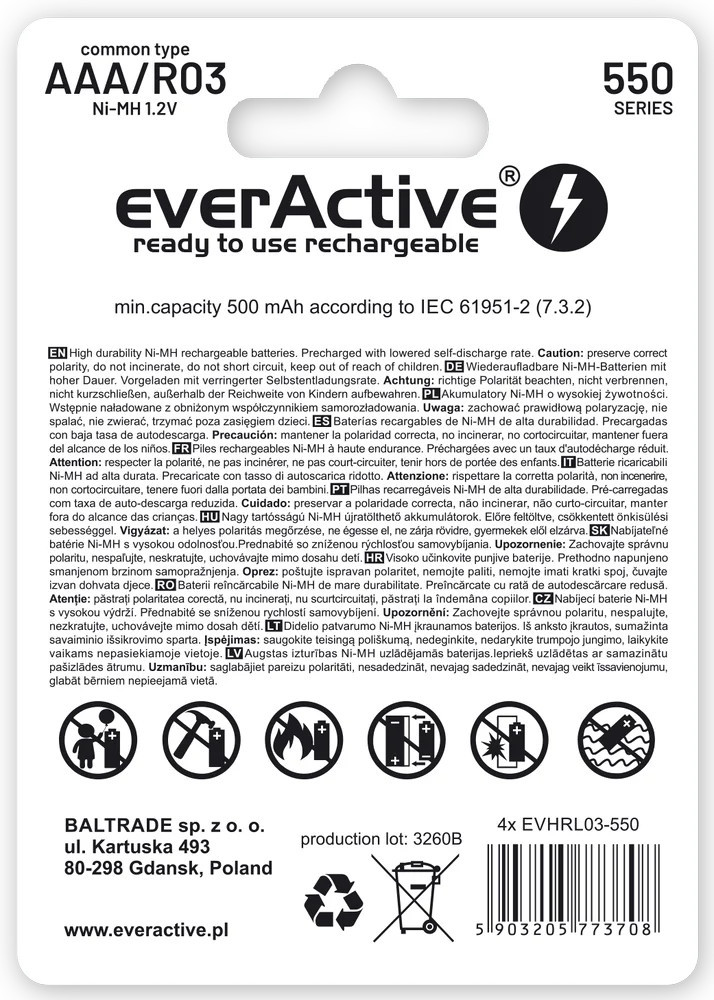 Akumulatorek EVERACTIVE Infinity Line AAA/HR03 550mAh (4szt)
