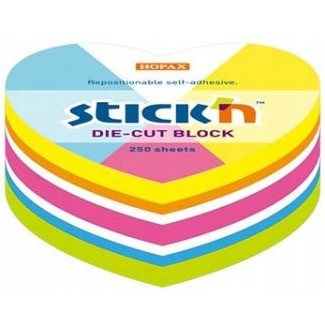 Notes samoprzylepny w ksztalcie serca o wymiarach 64x67 mm, posiada nietypowy ksztalt, dzieki czemu ozdobi kazde notatnik.