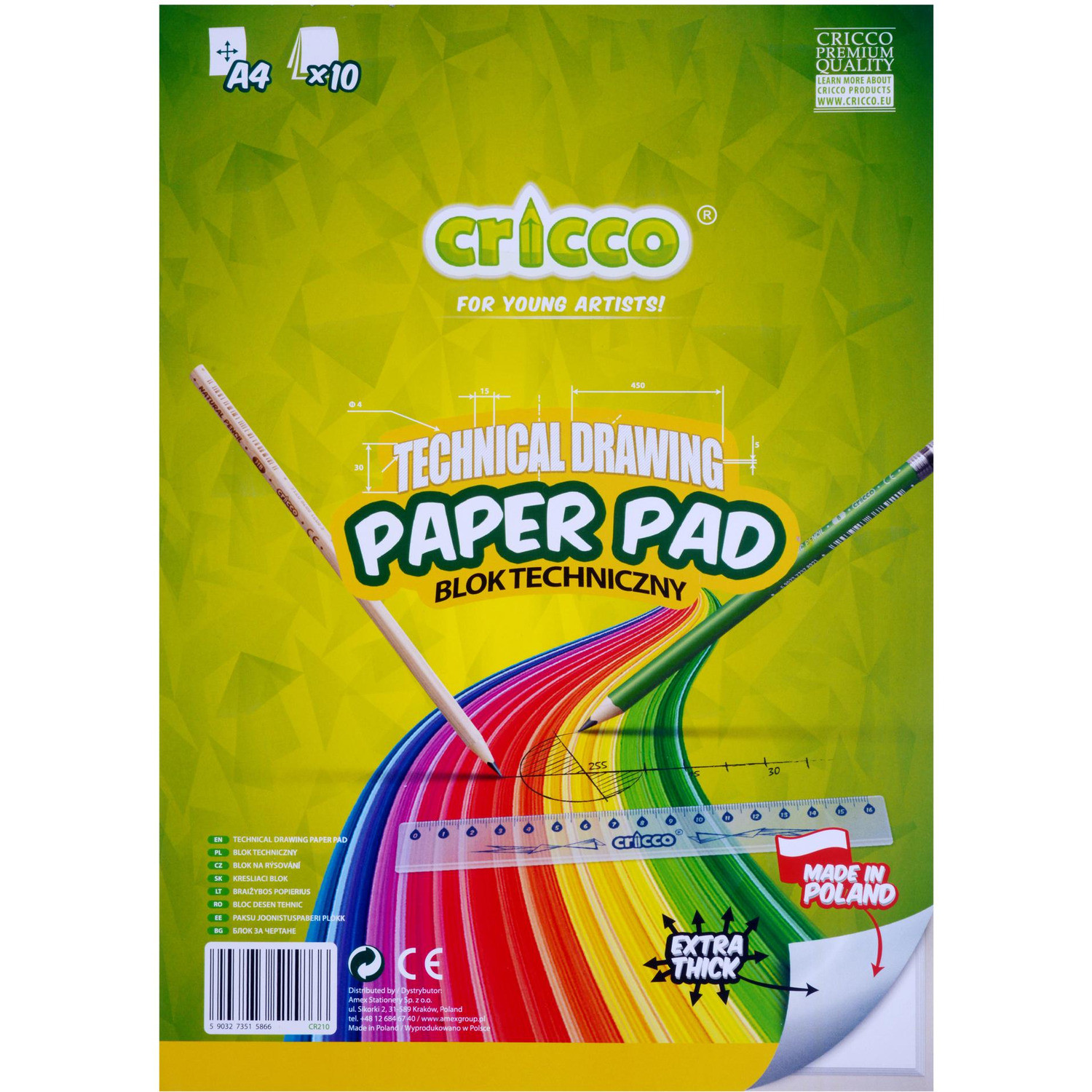 Blok techniczny Cricco w formacie A4 z papierem w kolorze białym. 10 arkuszy jednostronnie klejonych o gramaturze 170 g. Doskonały do wszelkich wyzwań młodych artystów. Wyprodukowane w Polsce.