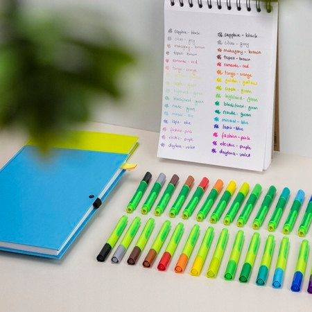 Pierwszy cienkopis z inteligentnym systemem pozwalającym swobodnie zestawiac dowolne kombinacje. Korpus wykonany jest w 88% z biotworzywa.