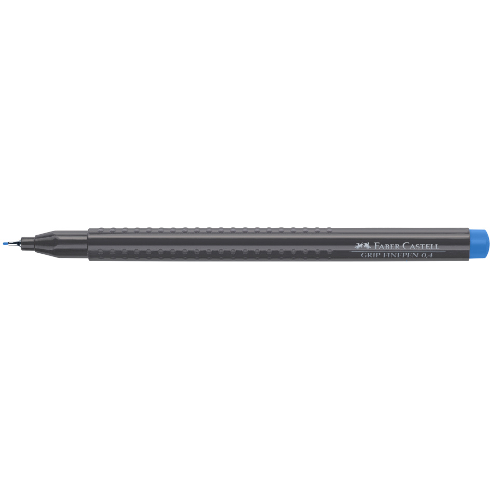 Cienkopis Grip Faber-Castell w kolorze niebieskim. Niezawodny, idealny do pisania, rysowania, szkicowania oraz cieniowania. Posiada tusz na bazie wody i barwników naturalnych. Spieralny z większości tkanin. Długa i odporna końcówka fibrowa w metalowej obudowie doda precyzji we współpracy z szablonami i linijkami. Ergonomiczny trójkątny kształt, miękka strefa uchwytu i charakterystyczna dla tej serii opatentowana strefa Grip z kropeczkami zapewniają wysoki komfort i wygodę użytkowania. Szerokość linii pisania: 0.4 mm. Odpowiedni zarówno dla prawo- jak i leworęcznych. Plastikowe części produktu wykonane w co najmniej 56% z tworzywa sztucznego pochodzącego z recyklingu.
