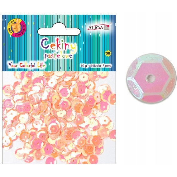 Zestaw pastelowych, lamanych cekinów z dziurką w rozmiarze 8mm.