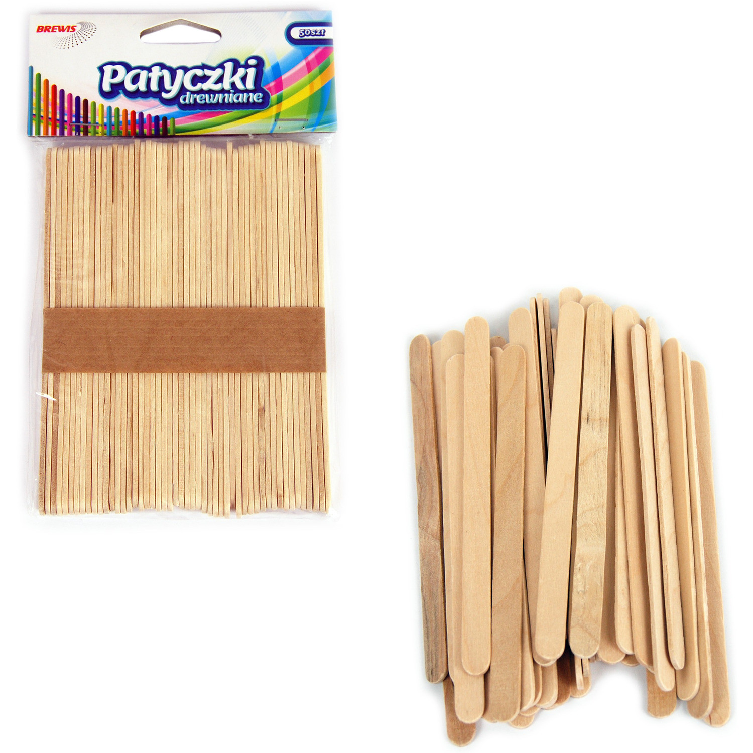 Patyczki do zastosowania na zajęciach plastycznych. W naturalnym kolorzew drewna, długość 140 mm, opakowanie 50 sztuk.