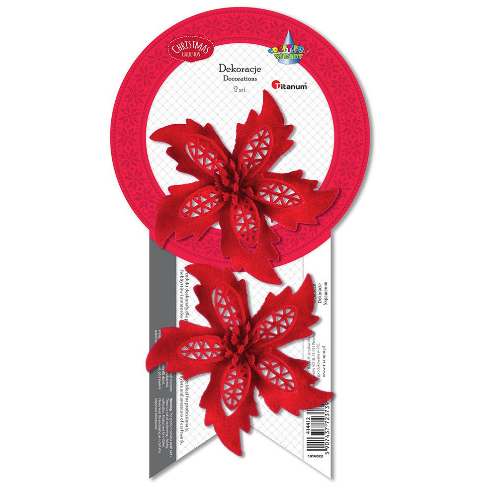 Dekoracje wykonane z pokrytego flokiem plastiku, dzięki czemu nie tracą kształtu. Dzięki dołączonemu drucikowi łatwe w użyciu. Niezastąpione przy tworzeniu bożonarodzeniowych aranżacji, dekoracji choinek, wianków, girland czy stroików. Idealne przy dekorowaniu kompozycji florystycznych, pakowaniu prezentów. Wymiary: 115 mm. 2 szt.