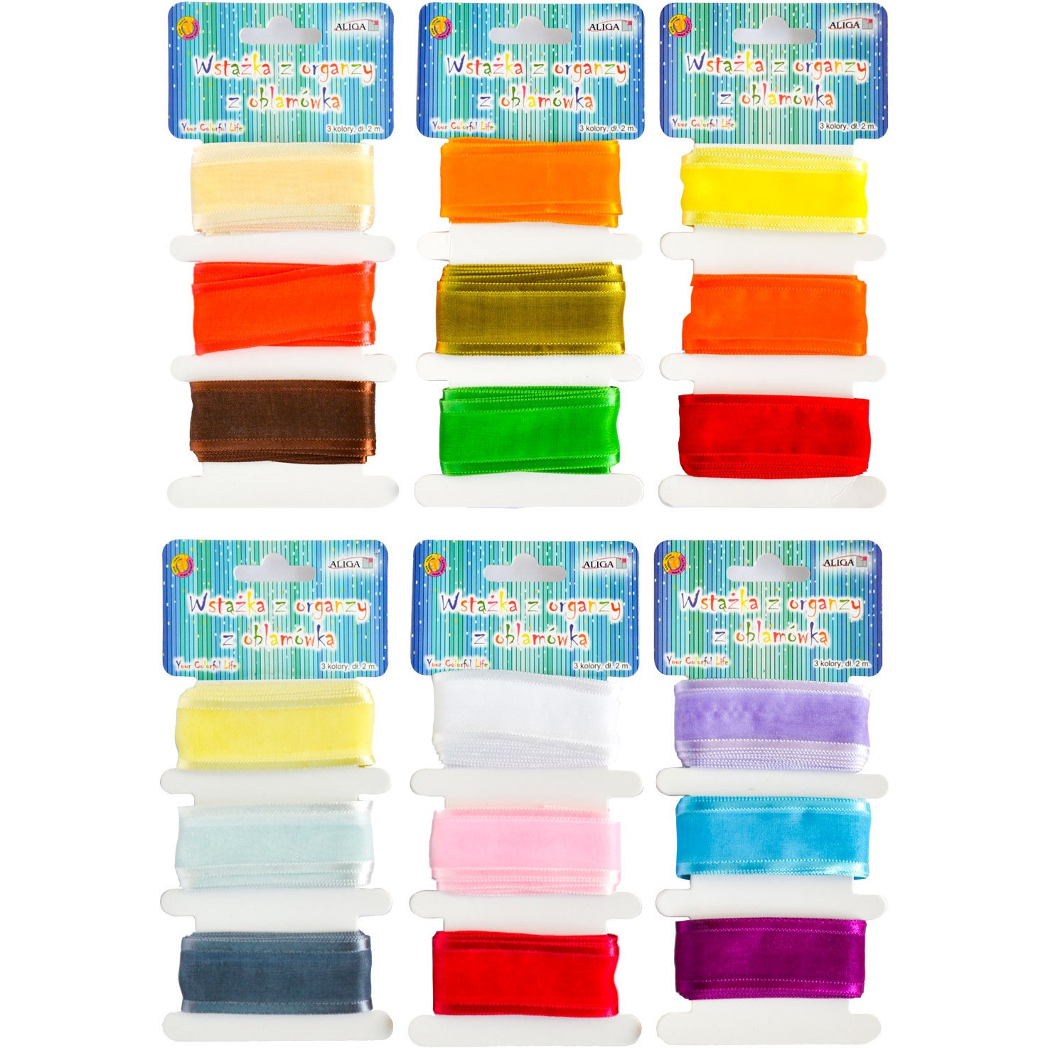 Wstążka z organzy z oblamówką szer. 25mm, dług. 2m 3 kolory na blistrze, 6 zestawów