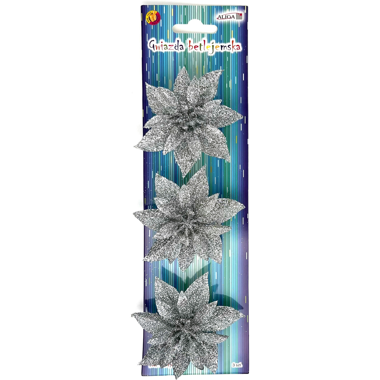 Gwiazda betlejemska srebrna 8cm, 3szt GBK-8121 ALIGA