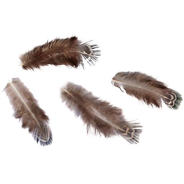 Piórka dekoracyjne, półpuch, brązowo-szare. Opakowanie 3 gramy.