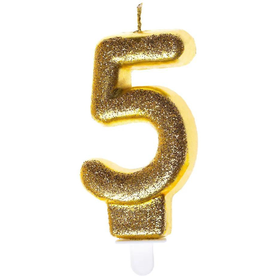 Świeczka urodzinowa złoty brokat 5 SH-687-5 GO PARTY