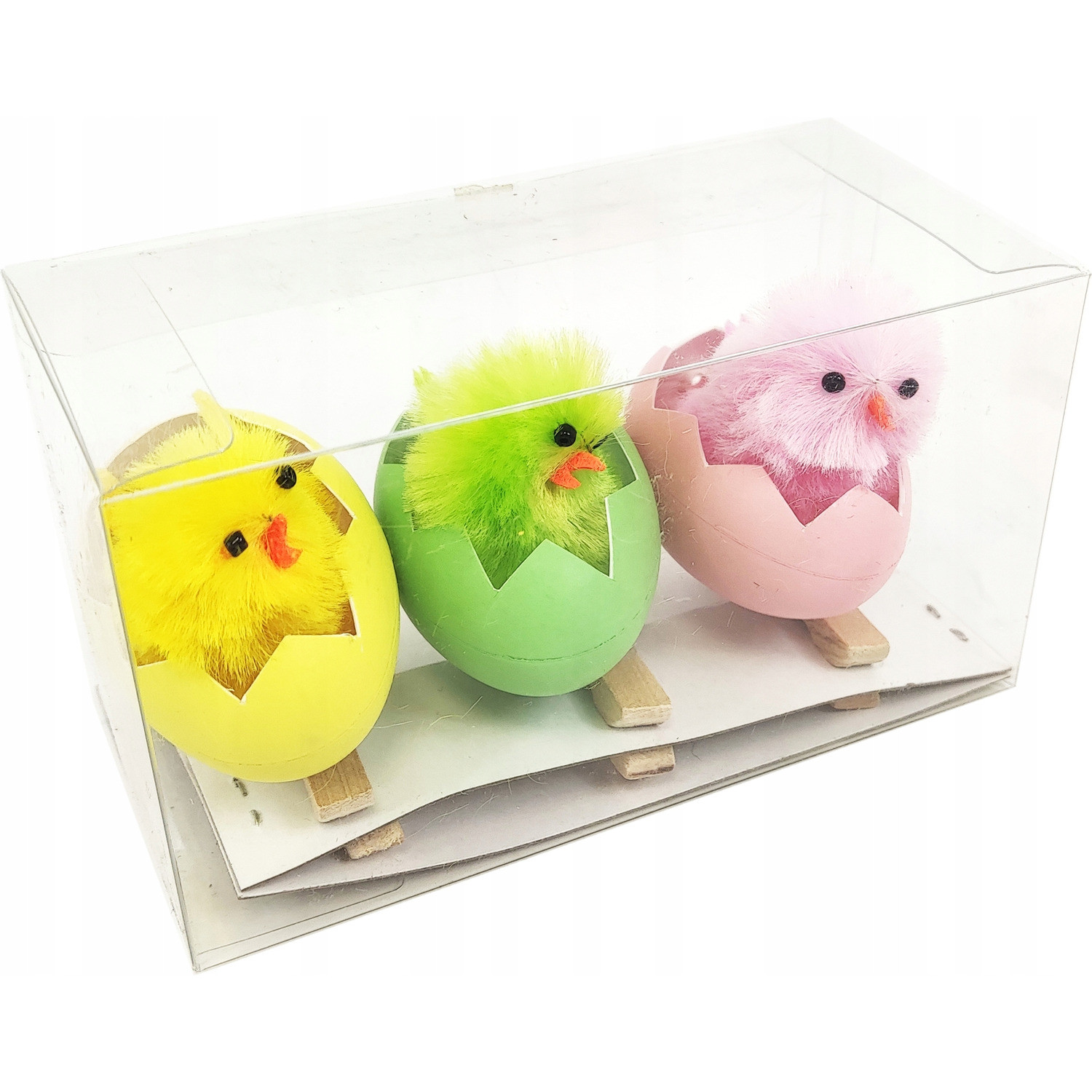 • Opakowanie zawiera 3 sztuki - żółtego, zielonego i różowego kurczaczka