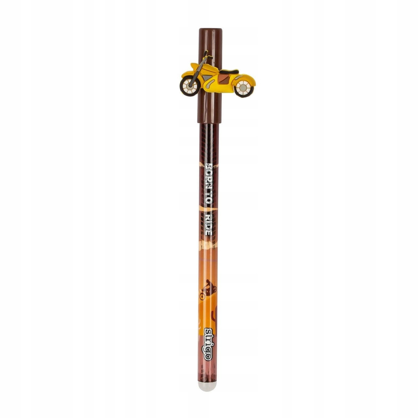 STRIGO oferuje wymazywalny dlugopis ze skuwką z serii Motocykle, który ma wymienny niebieski wklad. Produkt odznacza sie wysoką jakością wykonania, poniewaz posiada precyzyjną koncówke ulatwiająca pisanie. Biala glówka zamieszczona na koncu dlugopisu pozwala na skorygowanie bledów, jeśli sie pomyślisz! Sama obudowa wystepuje w czterech wariantach kolorystycznych i idealnie komponujące sie design dlugopisu.