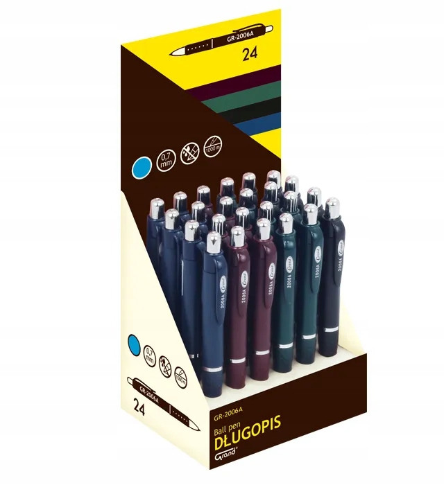 Dlugopis automatyczny z wymiennym wkladem, obudowa wykonana z wytrzymalego i estetycznego tworzywa sztucznego.