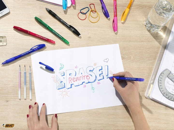 W dlugopisie BIC Gel-ocity Illusion wykorzystywany jest system tuszu zelowego oparty na technologii wrazliwości na wysoką temperature, wiec po potarciu gumką tusz znika bez śladu. Oznacza to, ze dlugopisem BIC Gel-ocity Illusion mozna pisac bez obaw o jakichkolwiek bledy.