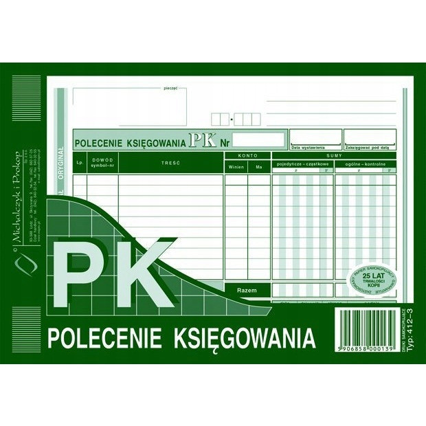 412-3 Polecenie ksiegowania A5 (oryginal +kopia ) 80k Michalczy k i Prokop
