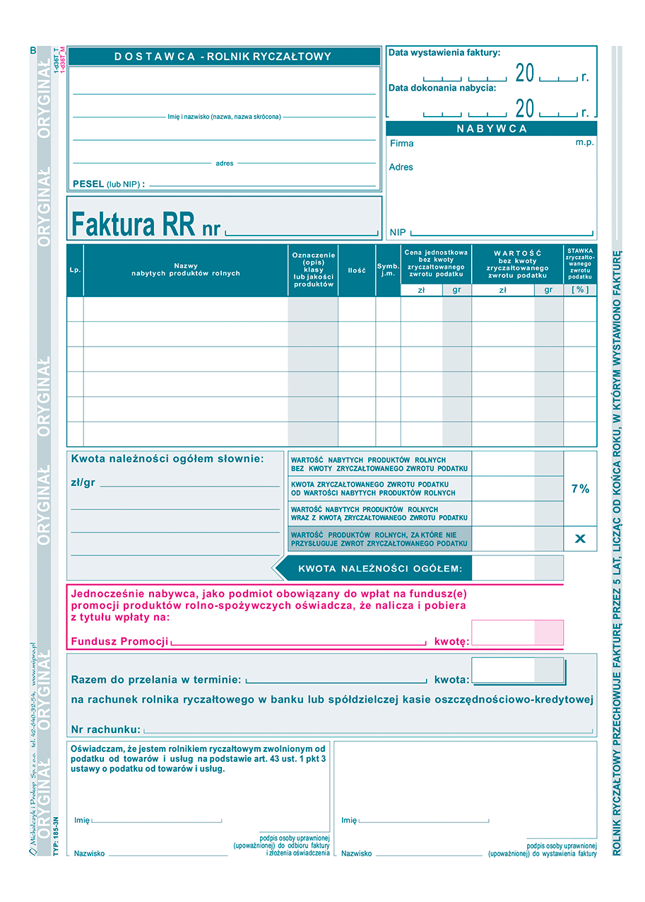 Faktura VAT RR (dla rolników), A-5