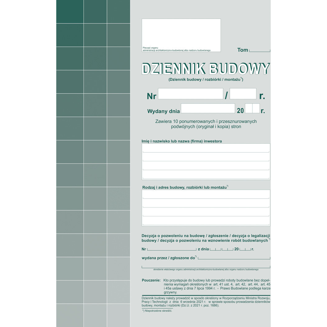 603-S1 Dziennik budowy (10kpl.) A4 oryginał + kopia Michalczyk i Prokop