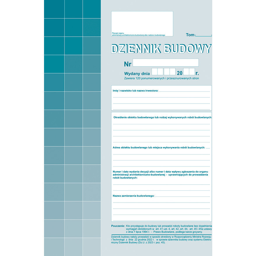 603-2Z Dziennik budowy A4 120 ponumerowanych stron Michalczyk i Prokop