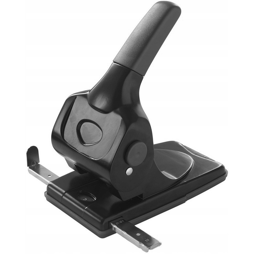 Solidny dziurkacz z metalową podstawą i dLwignią z antypoślizgowym uchwytem, przeznaczony do duzych plików.