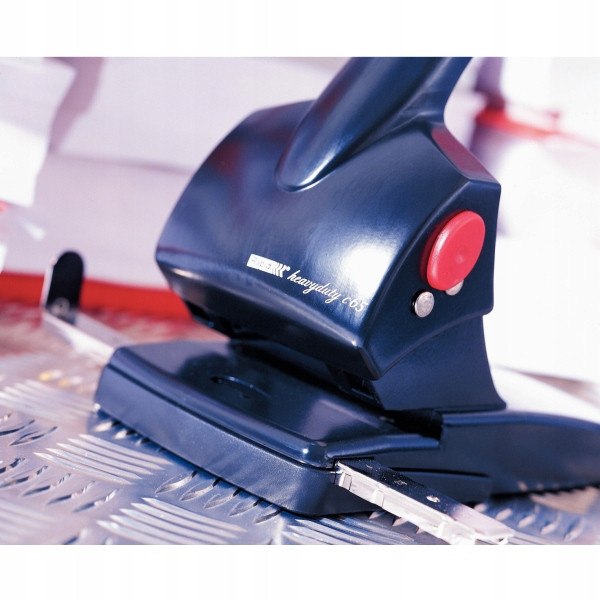 Wygodna, ergonomiczna dLwignia ulatwiająca dziurkowanie duzych plików. Dziurkuje do 65 kartek (80 gsm).