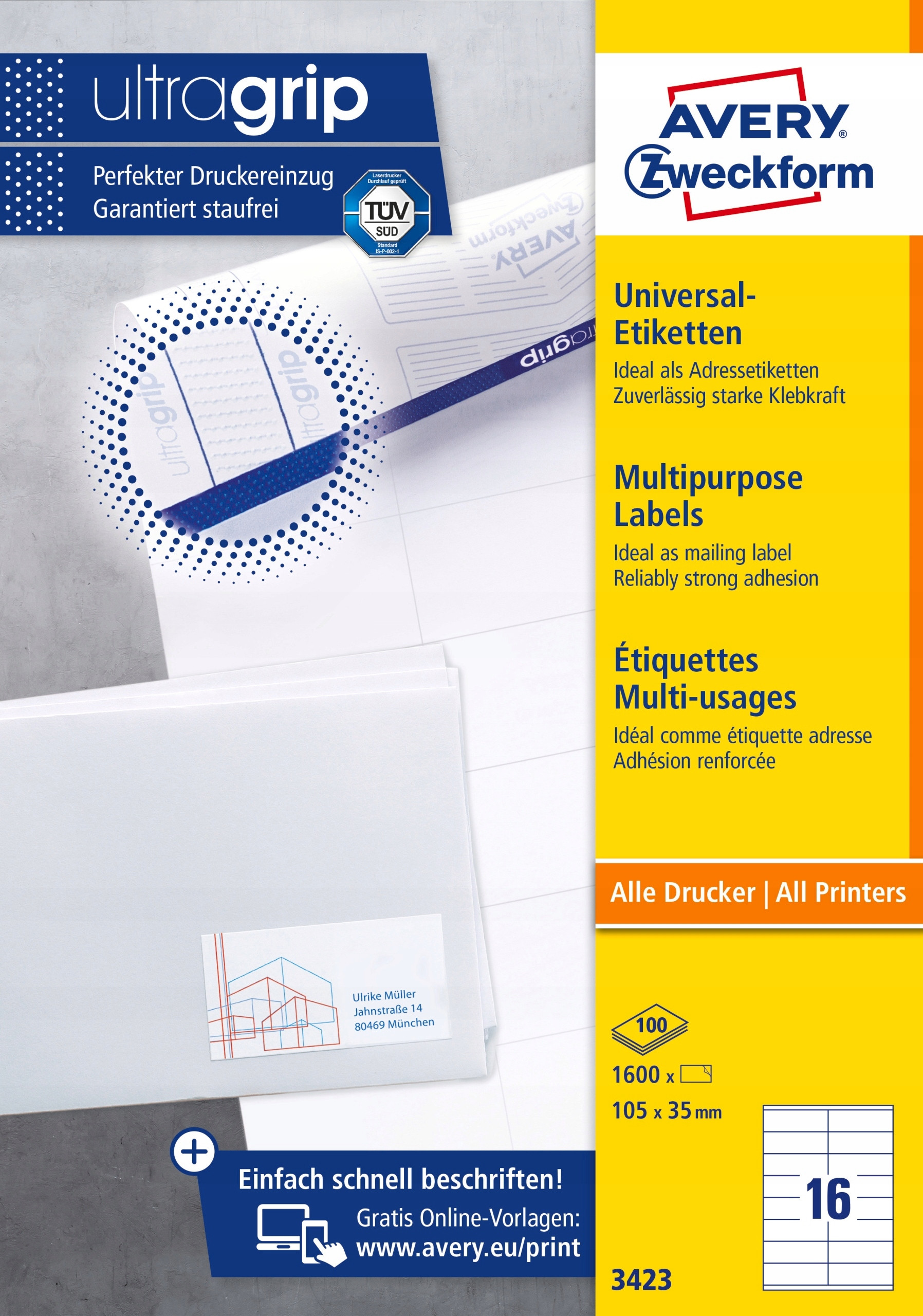 Innowacyjna technologia ultragrip opatentowana przez Avery Zweckform gwarantuje precyzyjne podawanie i równomierne prowadzenie arkusza oraz idealne drukowanie etykiet samoprzylepnych.