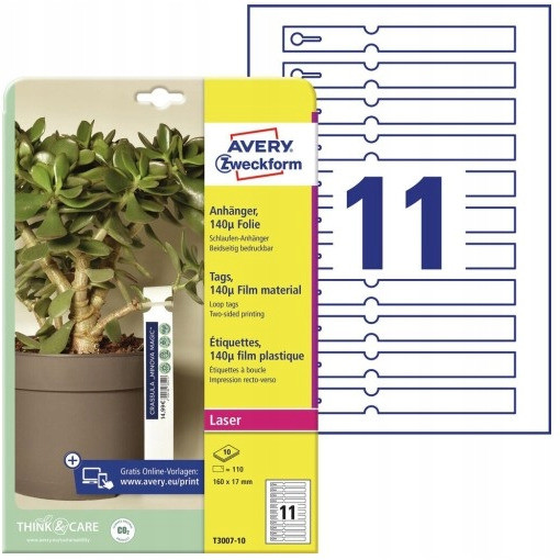 Biale, dwustronne, etykiety petelkowe do roślin Avery Zweckform. Etykiety są wodoodporne i idealnie nadają sie np. do oznaczania krzewów, drzew i innych roślin w szkólkach, centrach ogrodniczych lub marketach budowlanych.