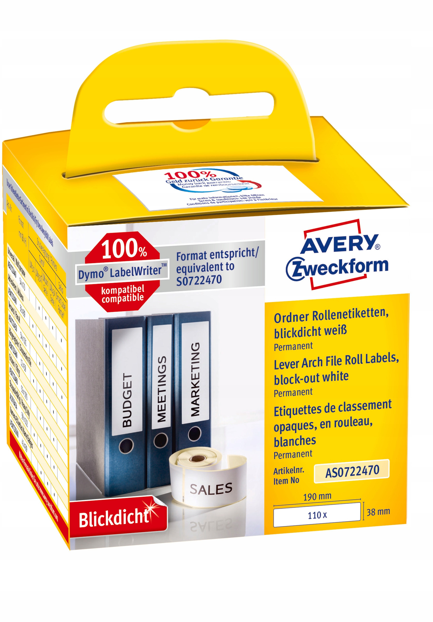 Etykiety kryjące na segregatory w rolce 110 etyk. 38 x 190 mm, trwałe, białe AS0722470 Avery Zweckfo