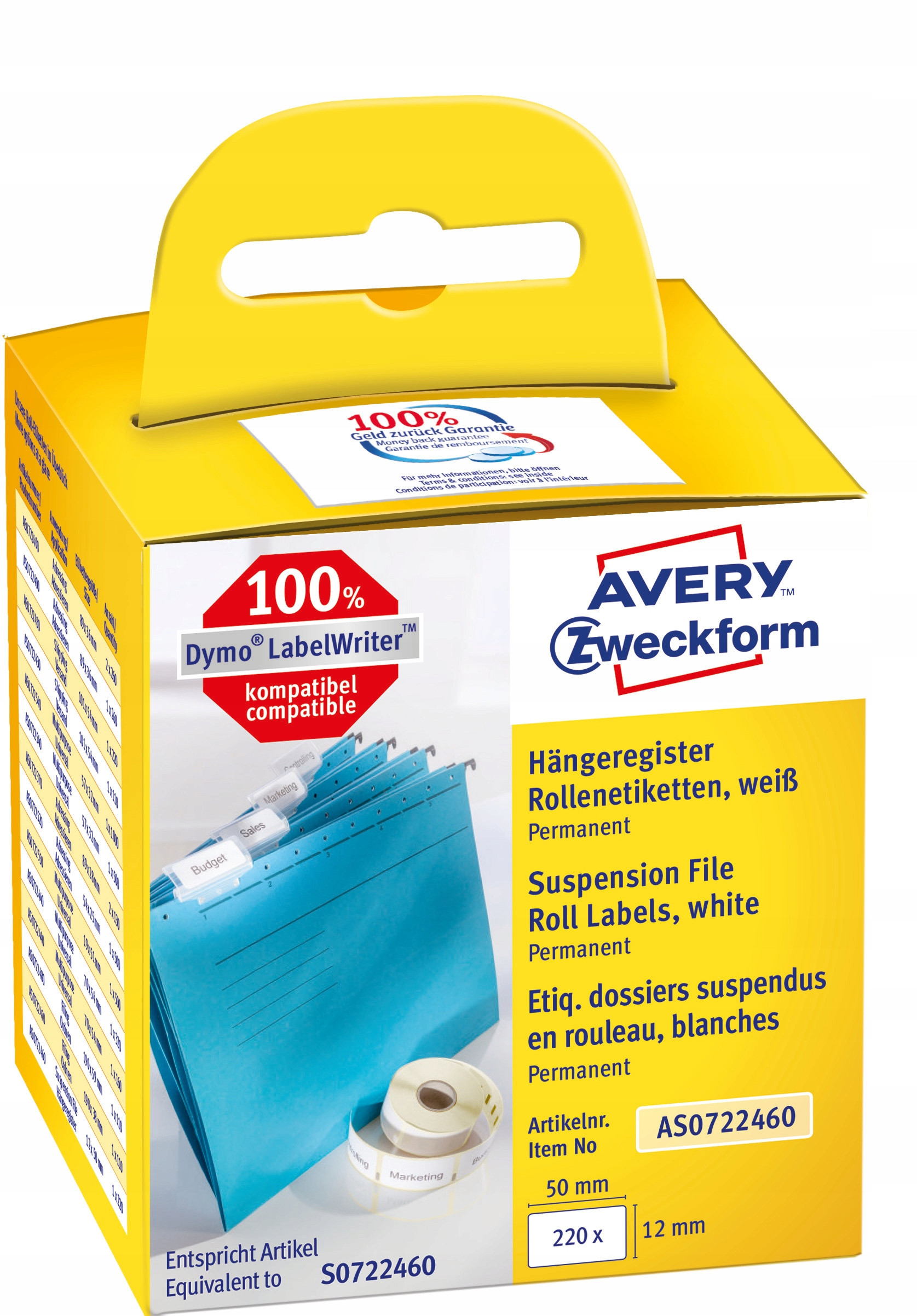 Minietykiety w rolce 220 etyk. 12 x 50 mm, trwałe, białe AS0722460 Avery Zweckform
