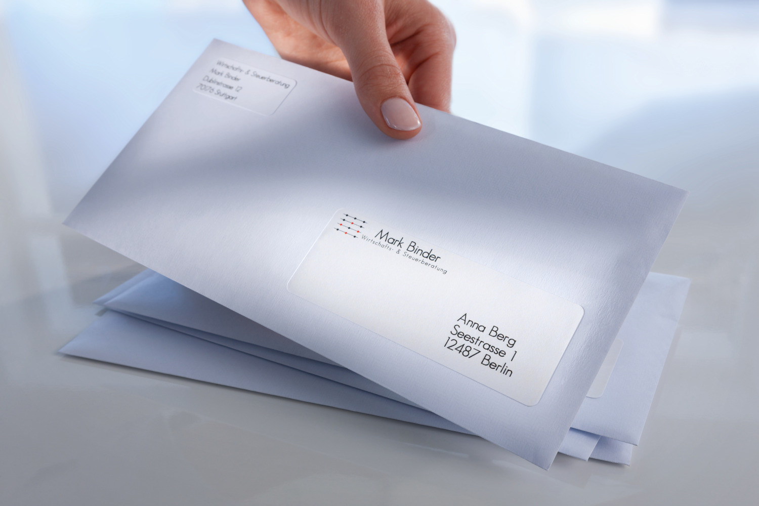 BIAŁE ETYKIETY ADRESOWE NA LISTY I KOPERTY • Posiadają unikalną i nowoczesną technologię UltraGrip: trójwymiarowe paski z przodu arkusza gwarantują równomierne pobieranie i prowadzenie arkusza w drukarce. • Eleganckie etykiety z zaokrąglonymi narożnikami, dostępne w rozmiarach dostosowanych do wszystkich popularnych typów kopert. • Wysokiej jakości papier ze specjalną powłoką zapobiega rozmazywaniu się druku nawet przy zawilgoceniu się etykiety. • Etykiety można łatwiej odrywać od arkusza i szybciej przyklejać dzięki unikatowemu systemowi QuickPEEL™. • Przeznaczone do drukarek laserowych – gwa