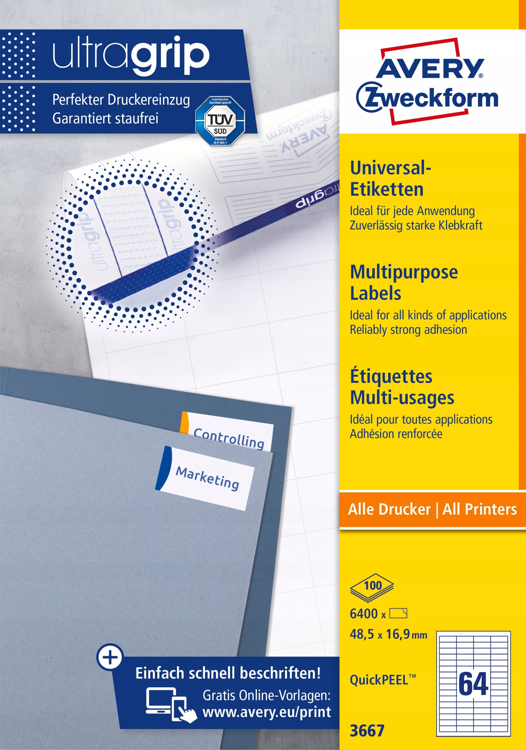 Innowacyjna technologia ultragrip opatentowana przez Avery Zweckform gwarantuje precyzyjne podawanie i równomierne prowadzenie arkusza oraz idealne drukowanie etykiet samoprzylepnych.