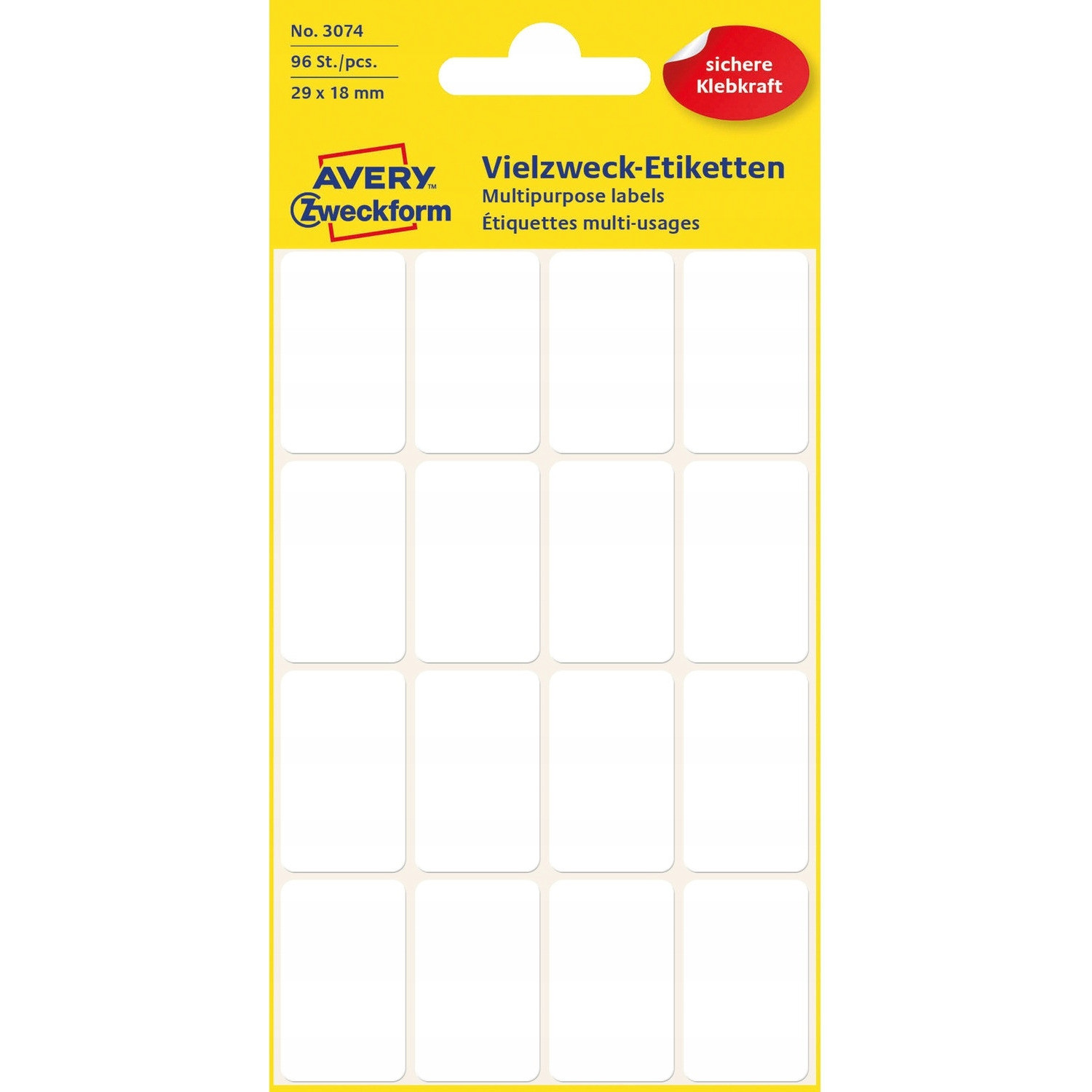 Etykiety białe 29x18mm do opisywania ręcznego (96 etykiet) 3074 AVERY ZWECKFORM