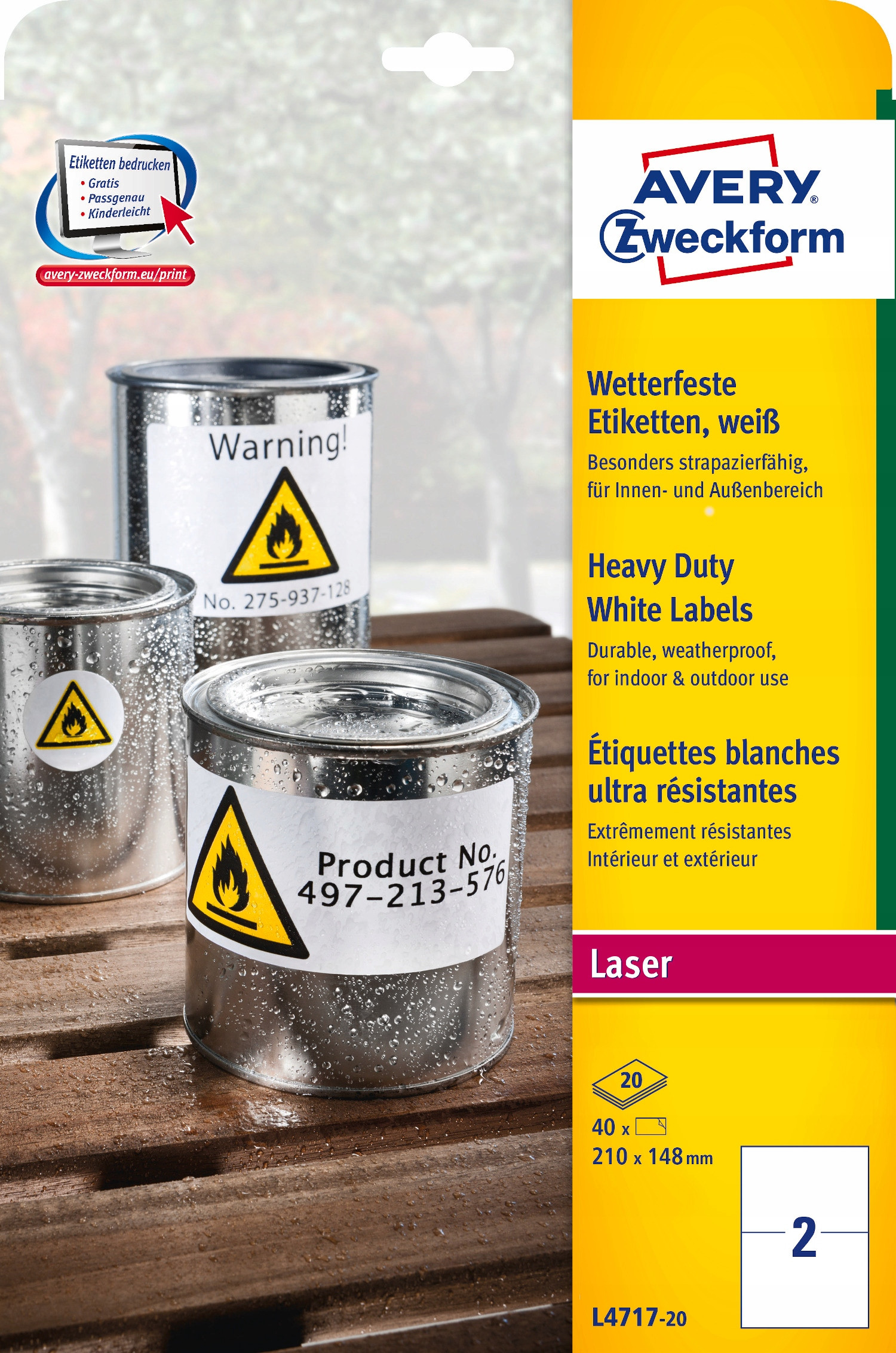 Etykieta A4 foliowa(20 arkuszy)210x148mm trwała 75g L4717-20 AVERY ZWECKFORM