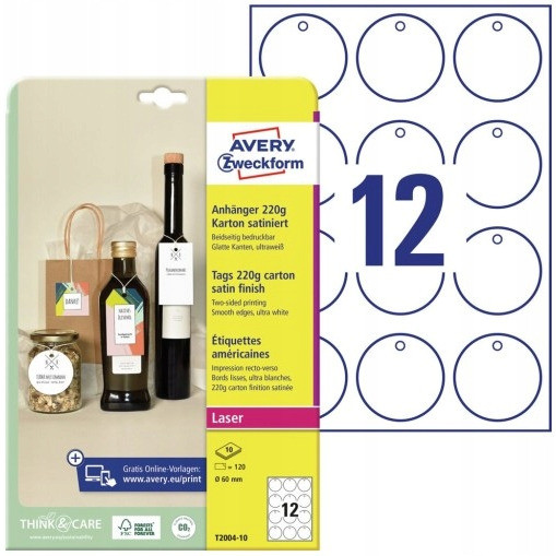 Biale, dwustronne zawieszki kartonowe Avery Zweckform do zadruku. Bardzo wysokiej jakości wykonane z wytrzymalego i przyjemnego w dotyku bialego kartonu. Mozna je dwustronnie zadrukowac lub opisac recznie.