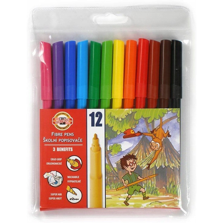 PISAKI SZKOLNE 12 kolorów FLAMASTRY KOH-I-NOOR