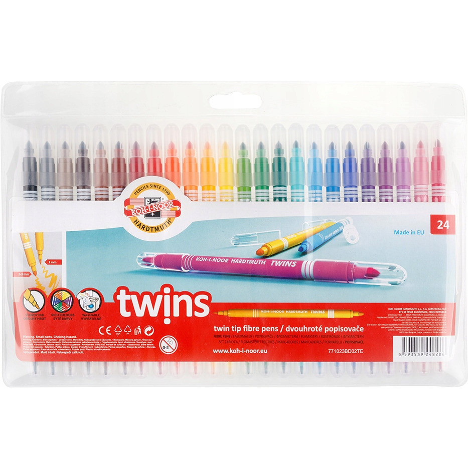 Flamastry posiadają dwie koncówki. Koncówka gruba ulatwia szybkie wypelnianie kolorem duzych powierzchni. Cienka koncówka zapewnia rysowanie cienkich linii.