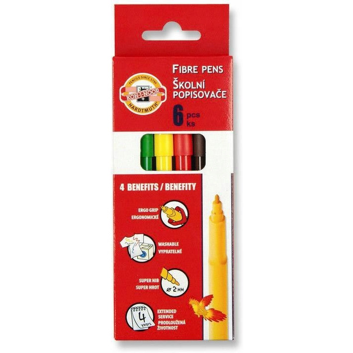 FLAMASTRY SZKOLNE 6 kolorów PISAKI KOH-I-NOOR