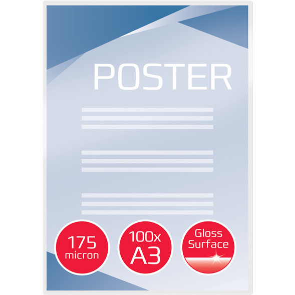 Wygodne rozwiązanie do ochrony i wzmocnienia przekazu najważniejszych stron prezentacji, listów referencyjnych, kart produktów, ogłoszeń itp. Format A3, 2 x 175 mikronów, z połyskiem. Opakowanie: 100 szt.
