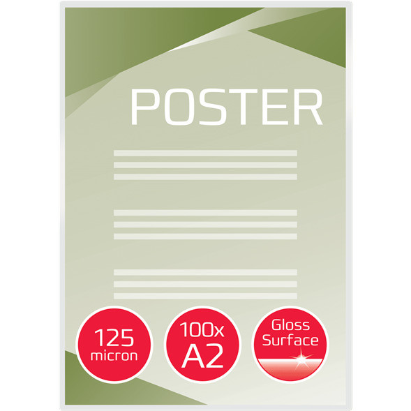 Wygodne rozwiązanie do ochrony i wzmocnienia przekazu najważniejszych stron prezentacji, listów referencyjnych, kart produktów, ogłoszeń itp. Format A2, 2 x 125 mikronów, z połyskiem. Opakowanie: 100 szt.
