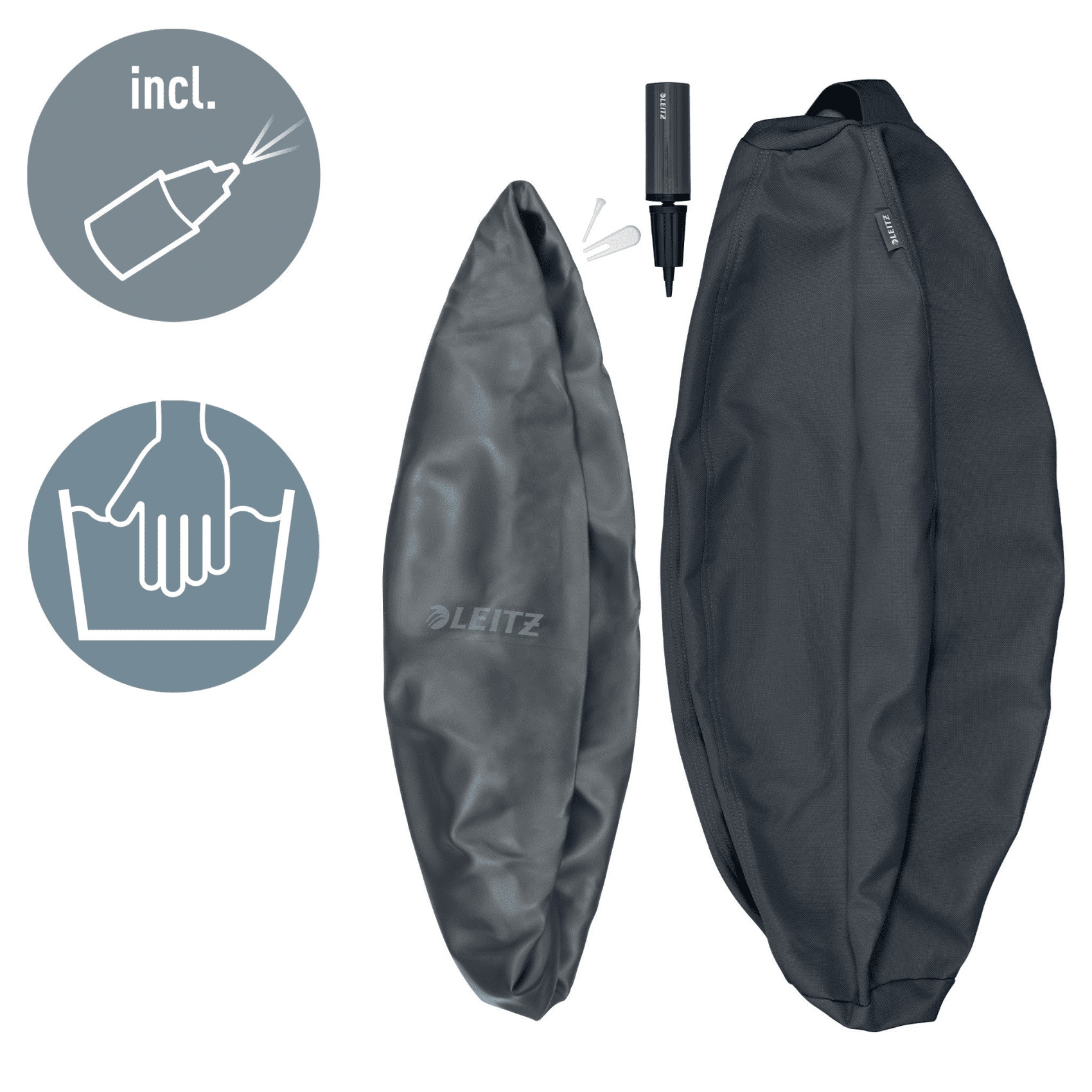 Pilka do aktywnego siedzenia Leitz, z zabezpieczeniem przed niekontrolowanym toczeniem sie, aktywizuje mieśnie pleców i kregoslupa, co przyczynia sie do poprawy postawy i lagodzenia bólu pleców.