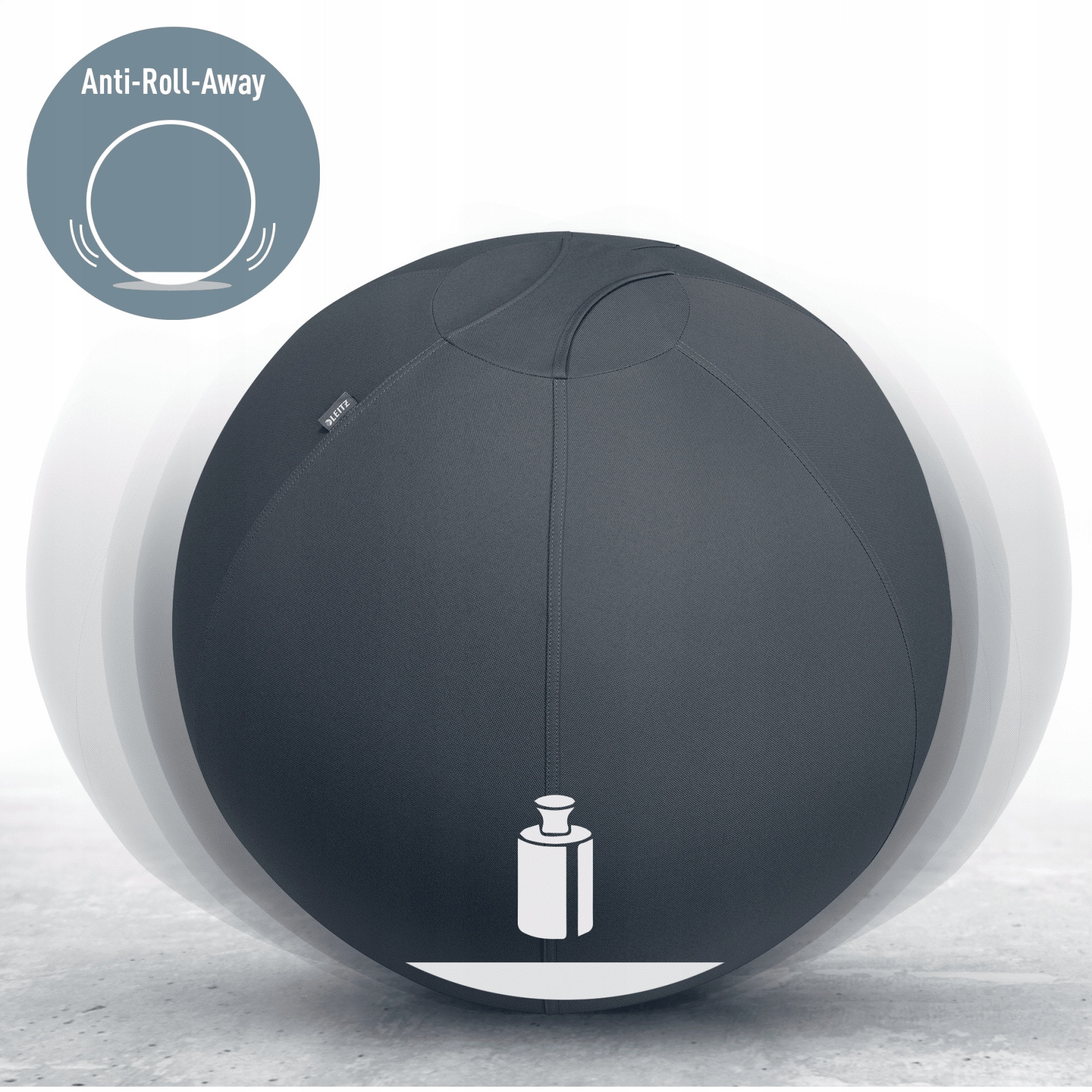 Pilka do aktywnego siedzenia Leitz, z zabezpieczeniem przed niekontrolowanym toczeniem sie, aktywizuje mieśnie pleców i kregoslupa, co przyczynia sie do poprawy postawy i lagodzenia bólu pleców.