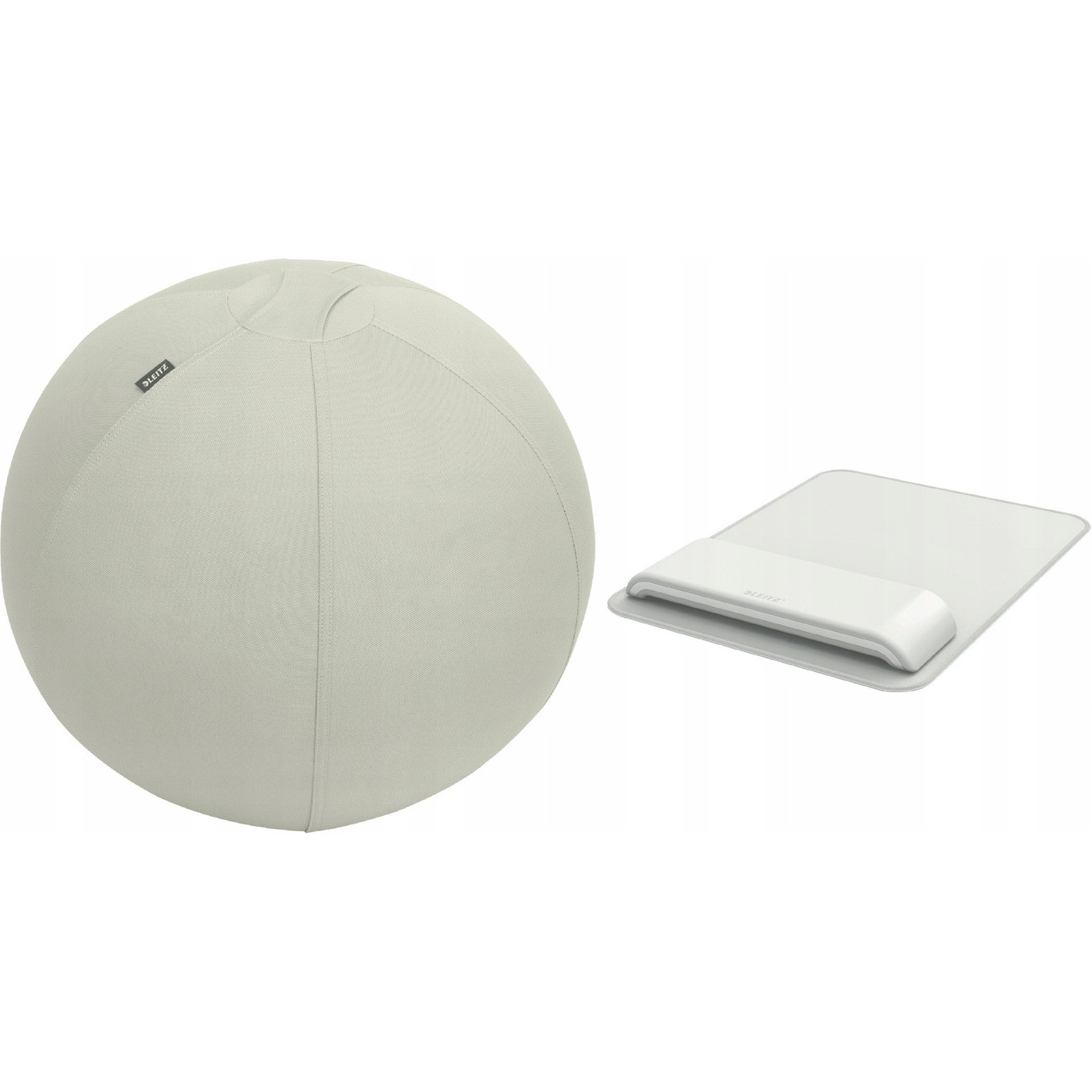 Zestaw Leitz zawiera pilke do siedzenia oraz podkladke pod mysz z podpórką pod nadgarstek.