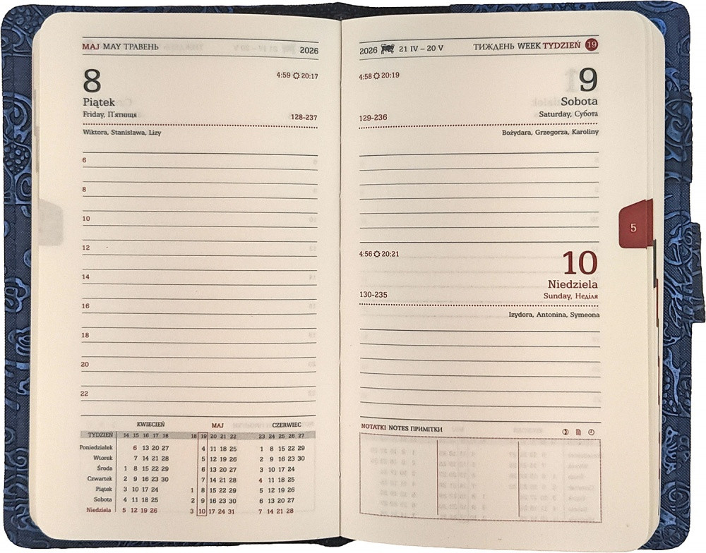 - W dolnej części strony skrócone kalendarium miesięczne.