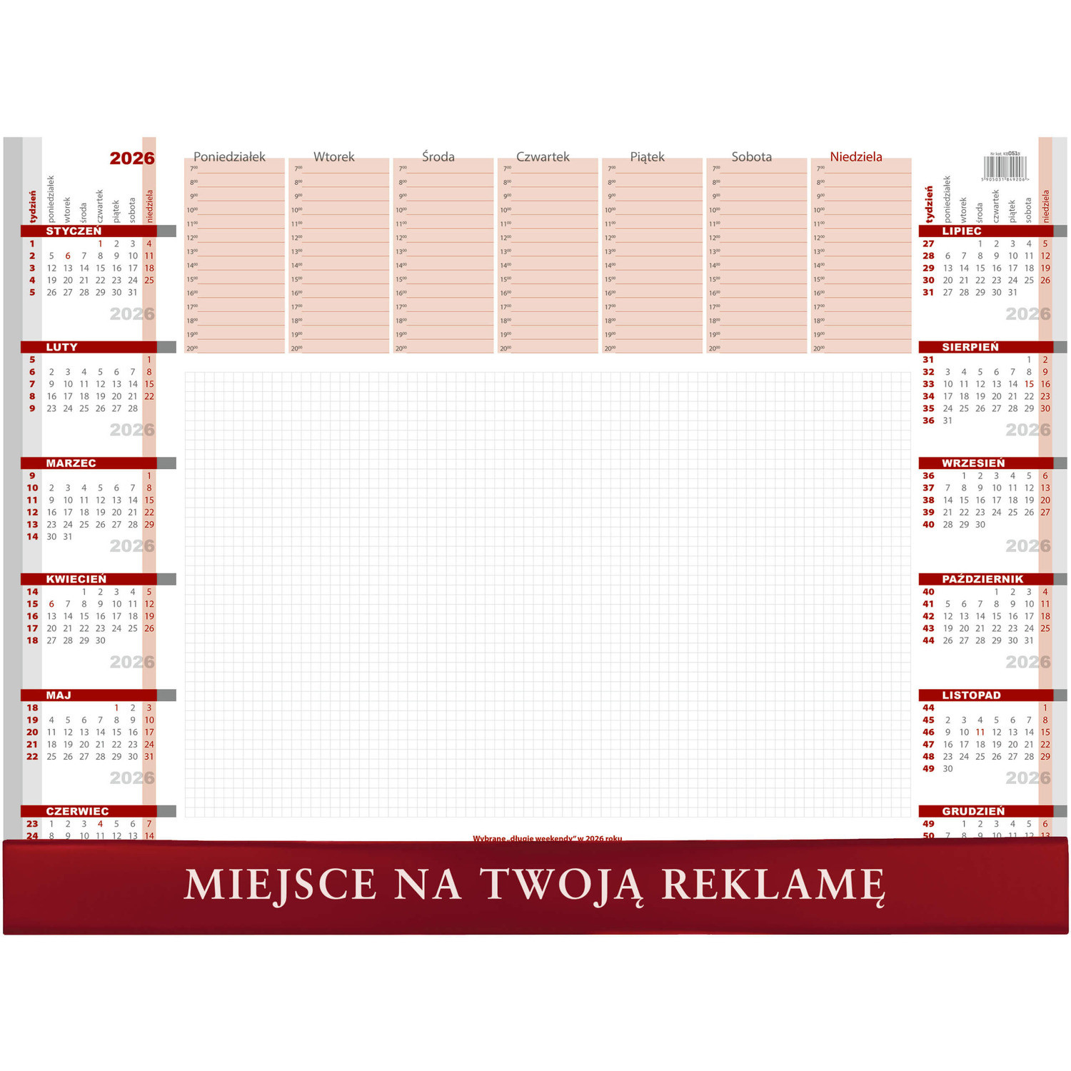 Drukowany na bialym papierze. Zawiera 52 karty (1 karta przeznaczona na kazdy tydzien).