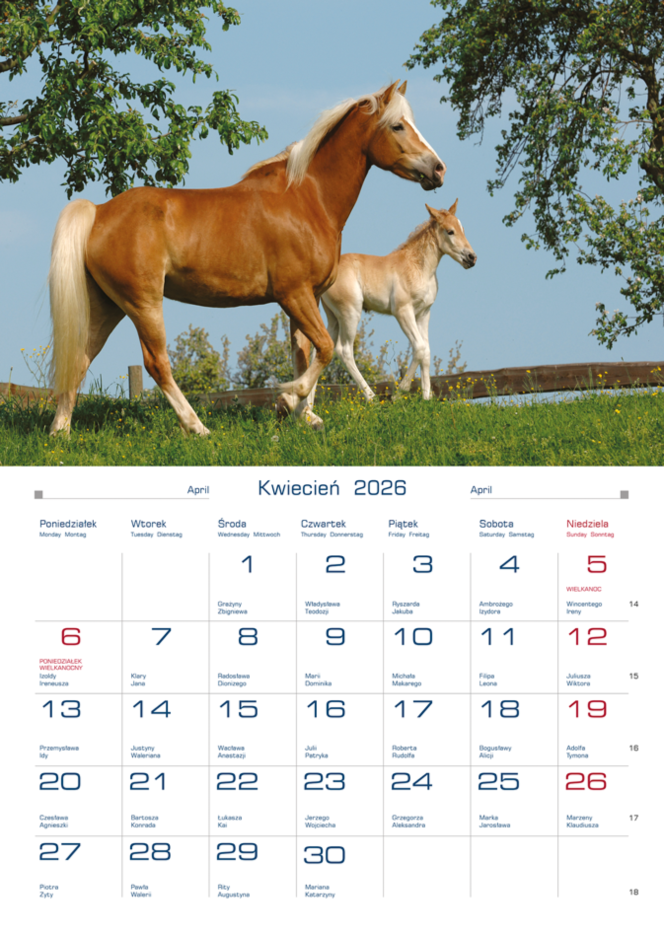 KALENDARZ ŚCIENNY na 2026 rok PLANER Konie
