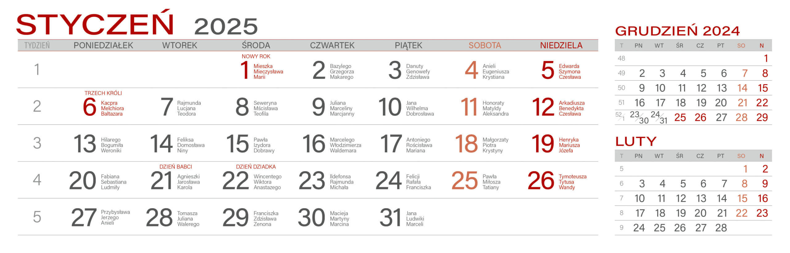 W kalendarzu zaznaczone święta. Na tylnej części podstawki kalendarza istnieje możliwość naniesienia reklamy na obszarze o wymiarach 305 x 100 mm w formie nadruku lub naklejki.