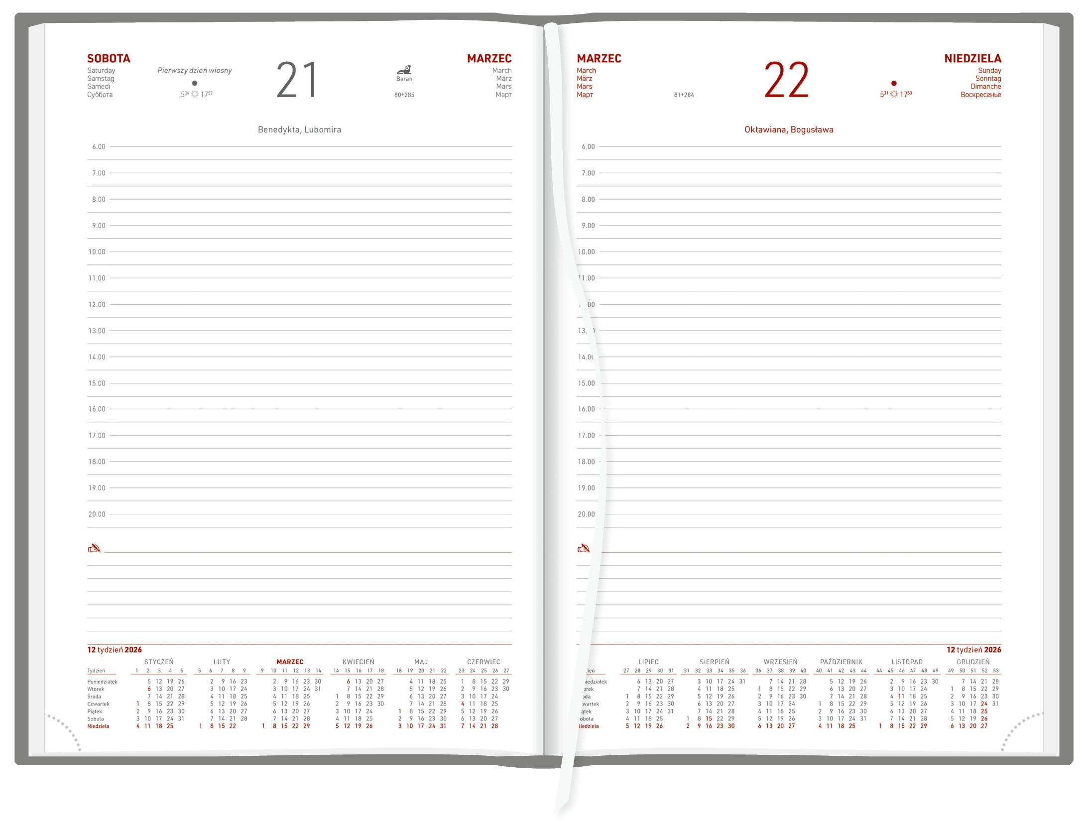 • układ: dzień na stronie, sobota i niedziela oddzielnie