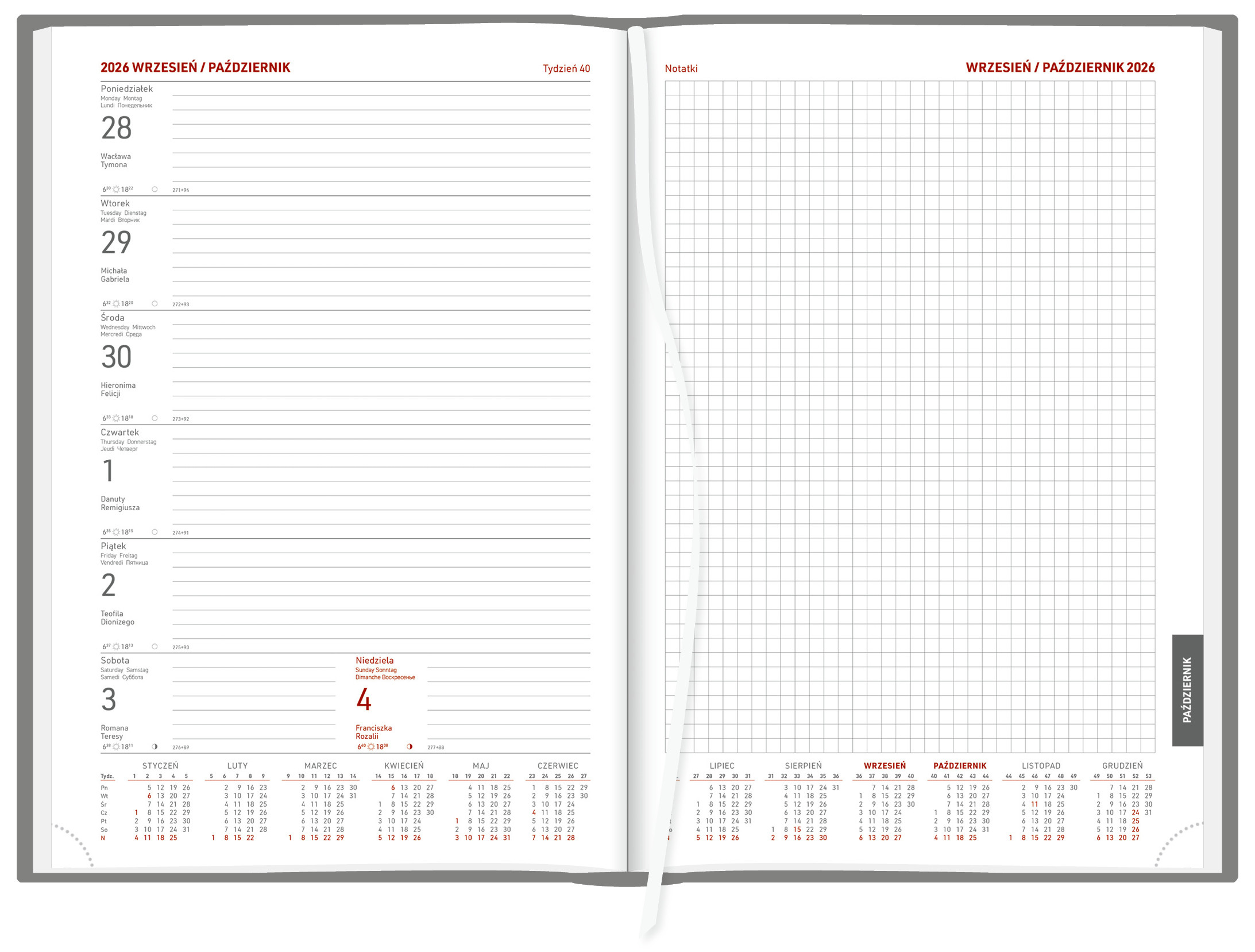 • układ: tygodniowy/ tygodniowy z notesem