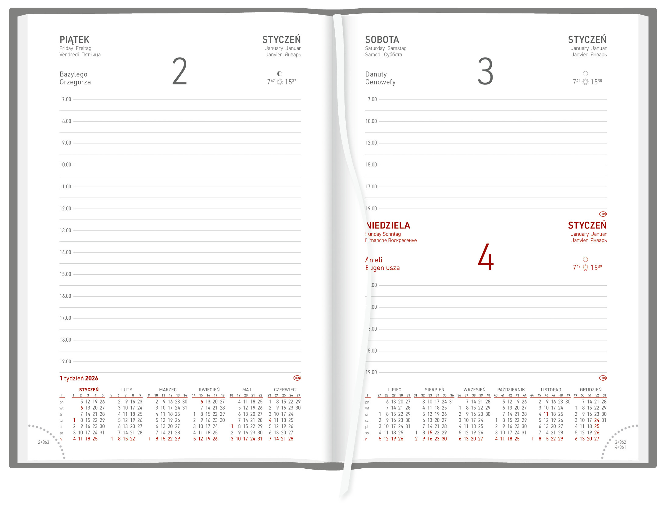 • układ: dzień na stronie, sobota i niedziela na jednej stronie