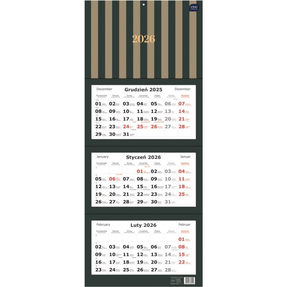 Kalendarz trójdzielny 2026 82,5x34cm Paski INTERDRUK