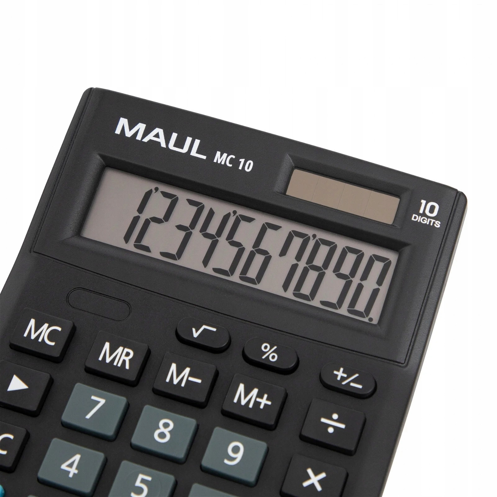 Solidny, wytrzymaly kalkulator biurkowy MAUL MC 10 w kolorze czarnym z duzym, 10-pozycyjnym wyświetlaczem LCD. Niezawodny, dokladny i o profesjonalnym wyglądzie. Szybsze wyszukiwanie: przyciski funkcyjne i numeryczne w róznych kolorach. Ergonomiczny: wyświetlacz umieszczony pod kątem dla ulatwionego odczytu. Kompaktowy rozmiar i zaokrąglone krawedzie sprawiają, ze dobrze lezy w dloni i nie zajmuje duzo miejsca na biurku. Przyciski z tworzywa sztucznego: wytrzyma