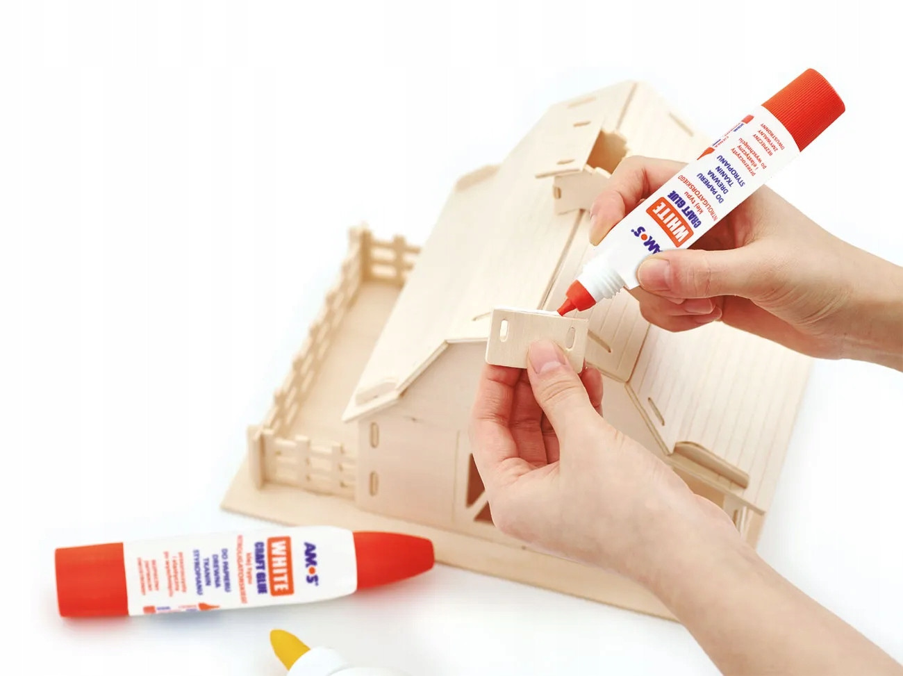 Klej w plynie marki Amos o bardzo dobrych wlaściwościach klejących.